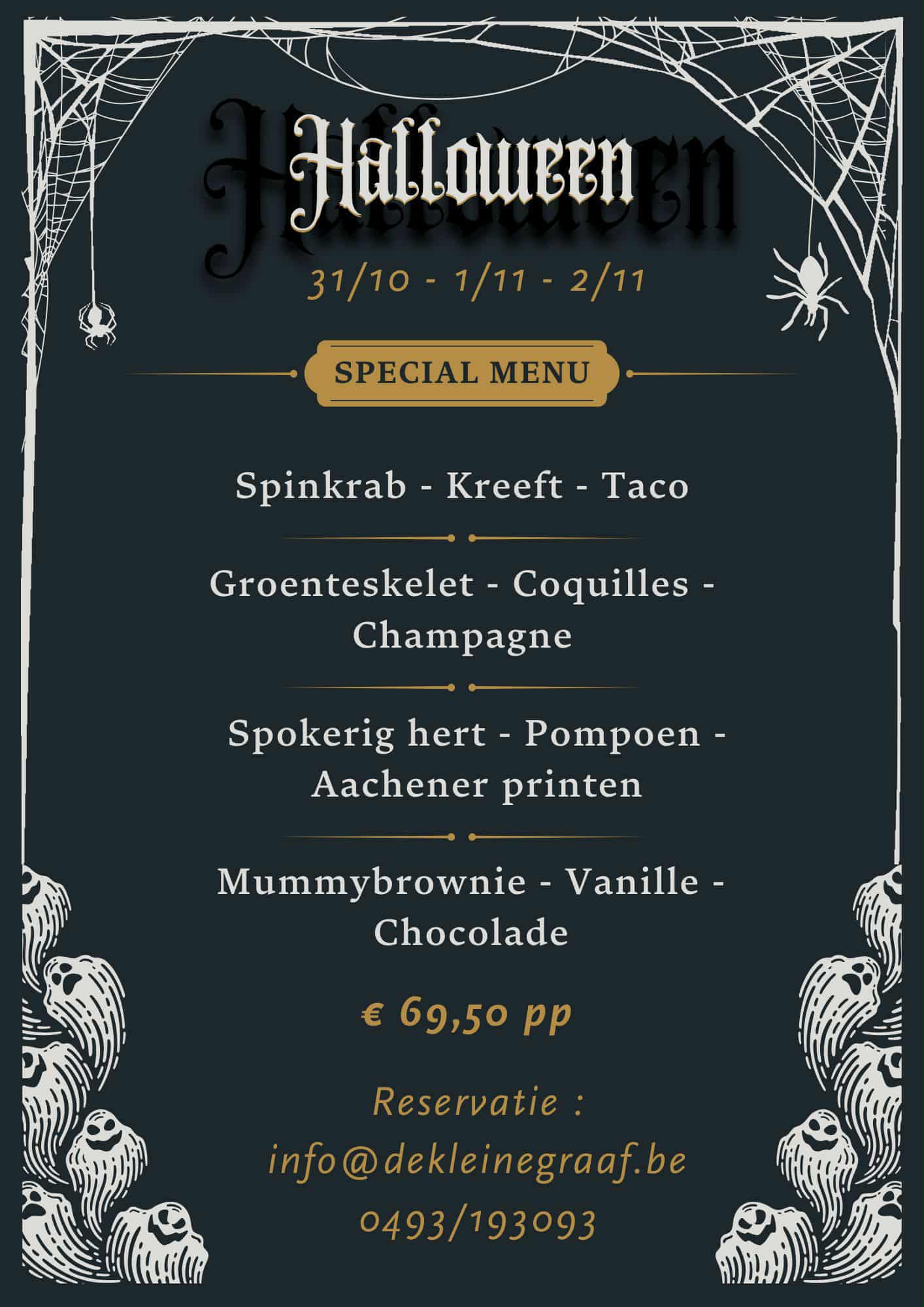 Op 31 oktober, 1 en 2 november toveren we ons restaurant om tot een spookachtig gezellig decor vol verrassingen. Laat je verleiden door mysterieuze smaken, griezelig lekkere gerechten en een vleugje magie in elk glas.