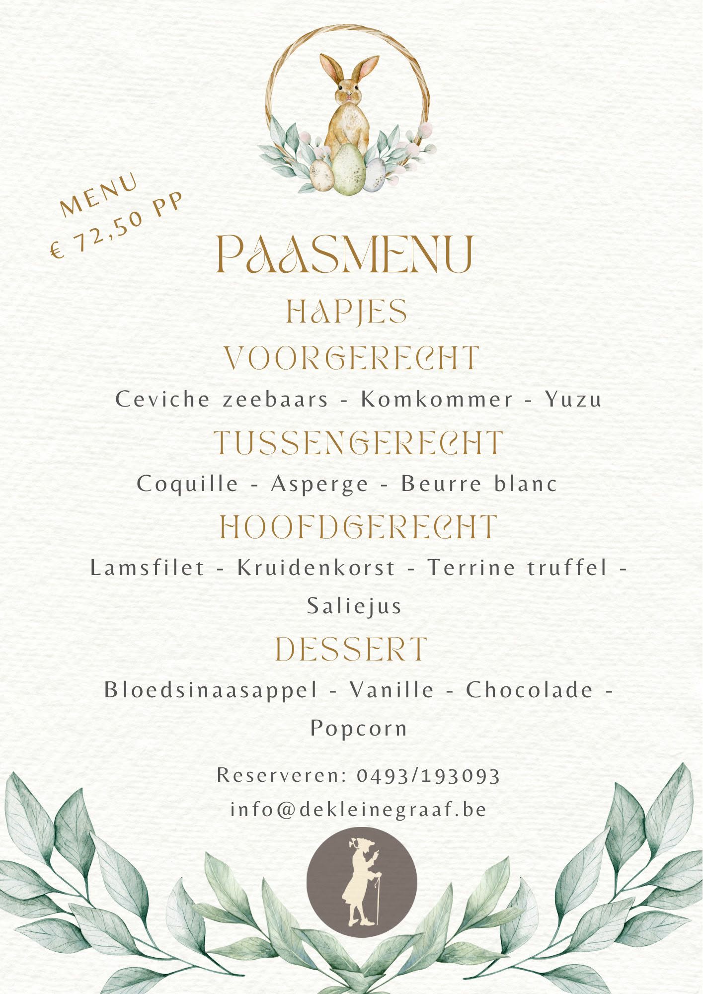 Laat de keuken het werk doen terwijl jullie samen genieten aan tafel. Kom langs, proef ons paasmenu en maak er een warme, smakelijke familietraditie van.